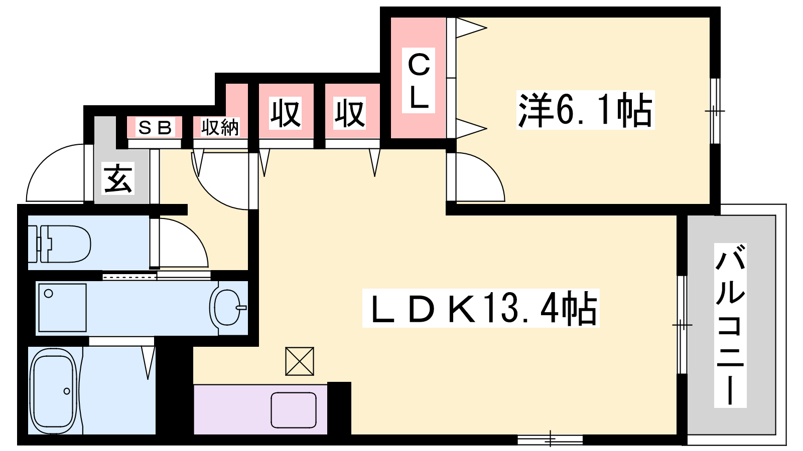 - LDK13.4帖、洋室6.1帖