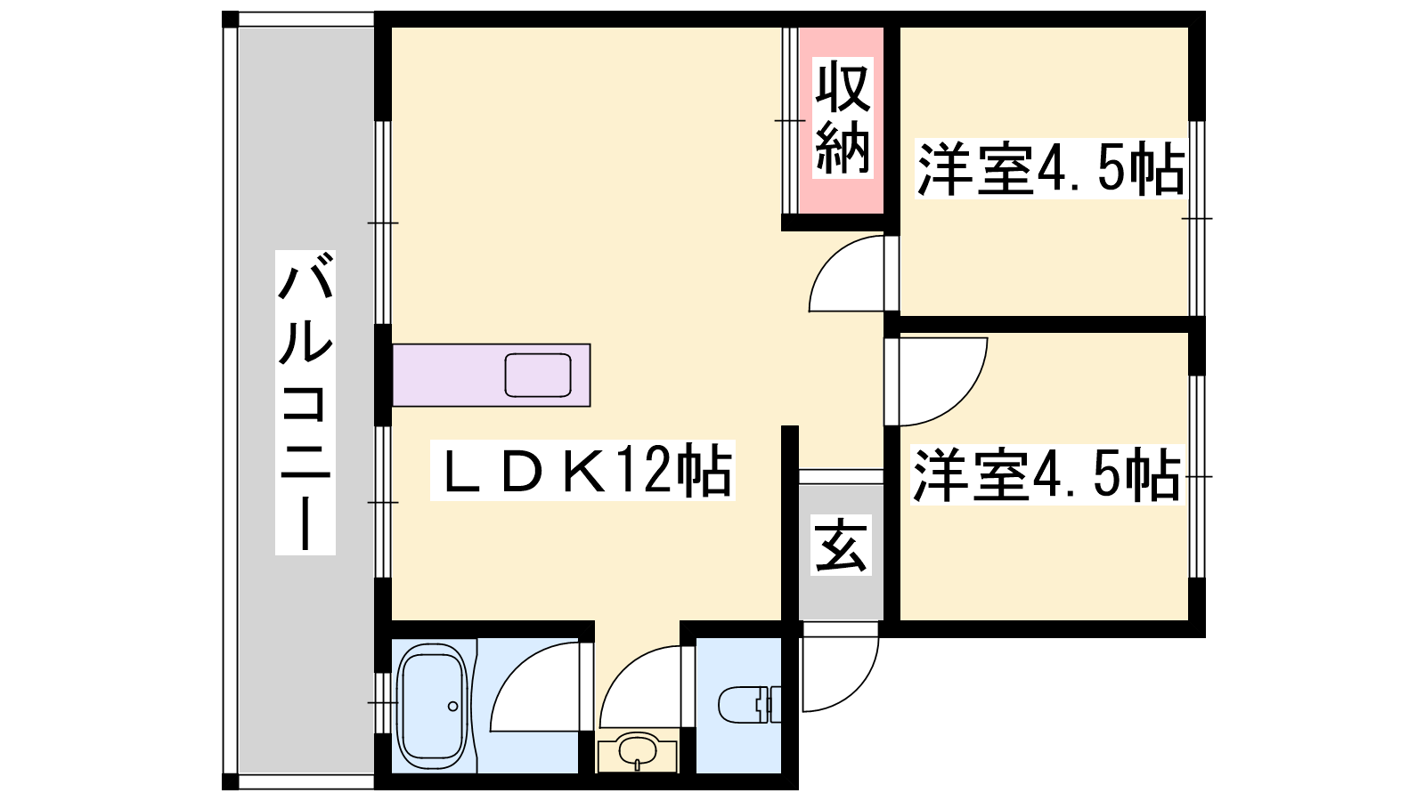- LDK12帖、洋室4.5帖、洋室4.5帖