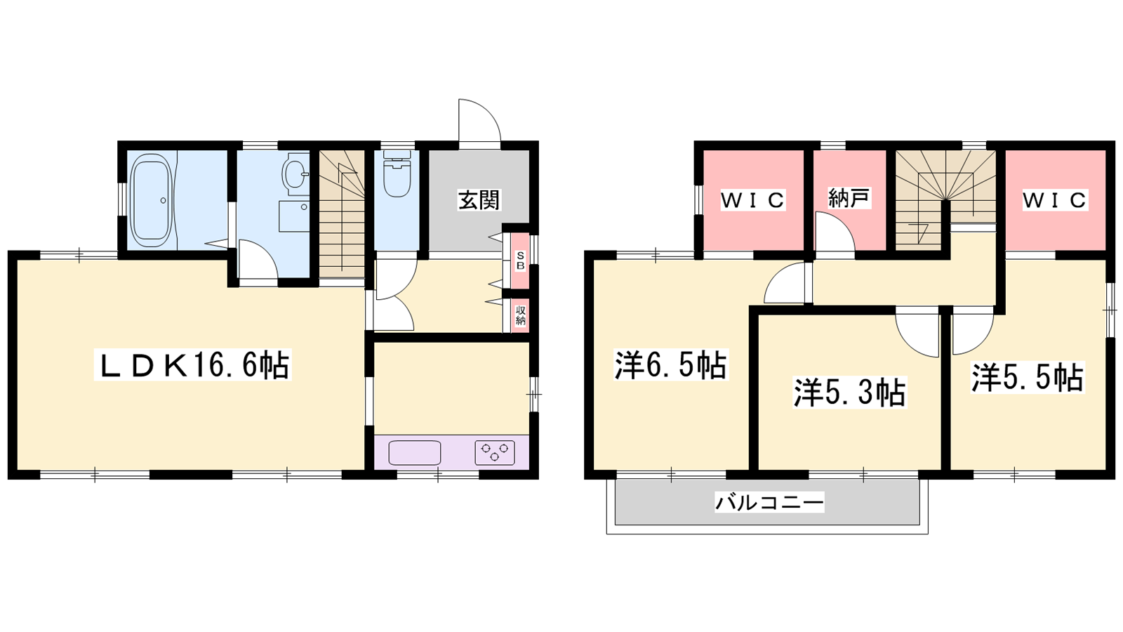 - LDK16.6帖、洋室6.5帖、洋室5.5帖、洋室5.3帖