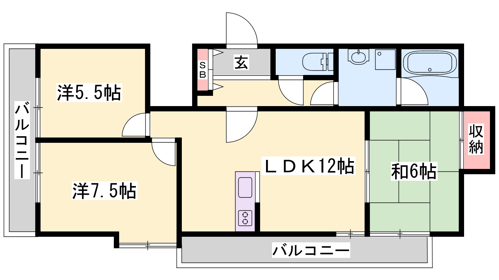 - LDK12帖、洋室7.5帖、洋室5.5帖、和室6帖