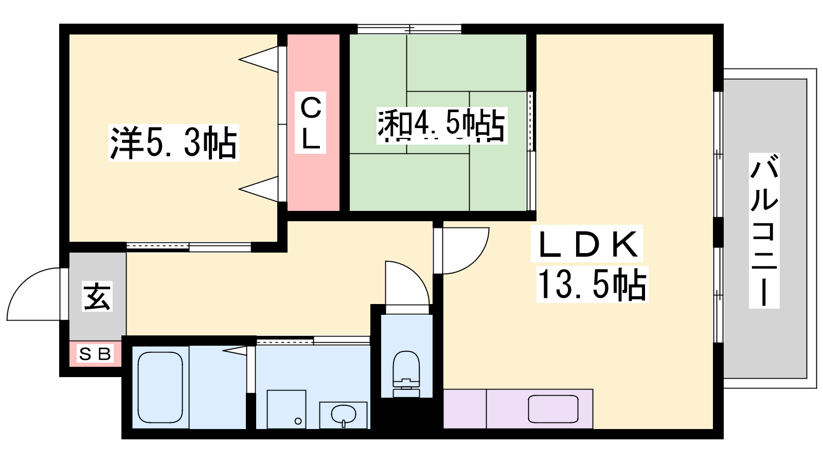 - LDK13.5帖、洋室5.3帖、和室4.5帖