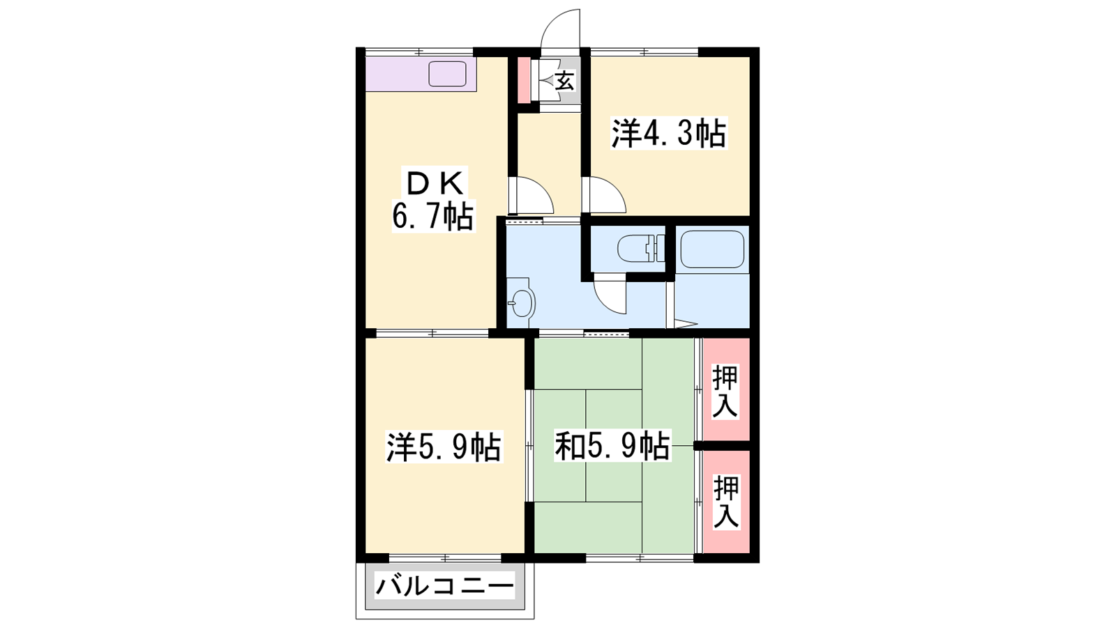 - DK6.7帖、和室5.9帖、和室5.9帖、洋室4.3帖