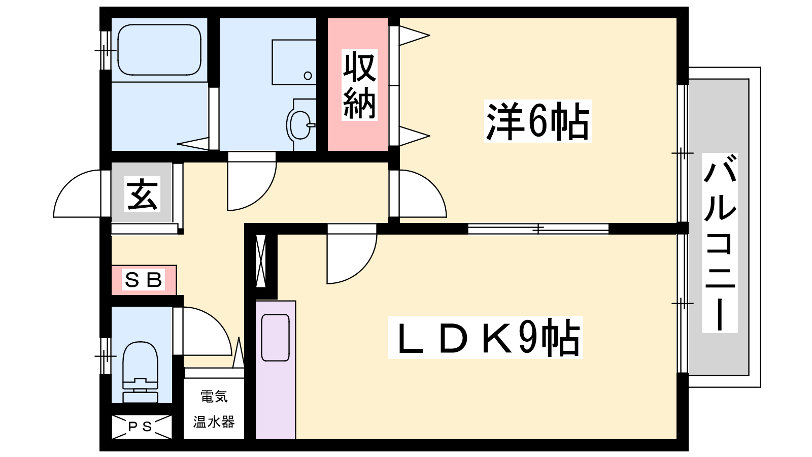 - LDK9帖、洋室6帖
