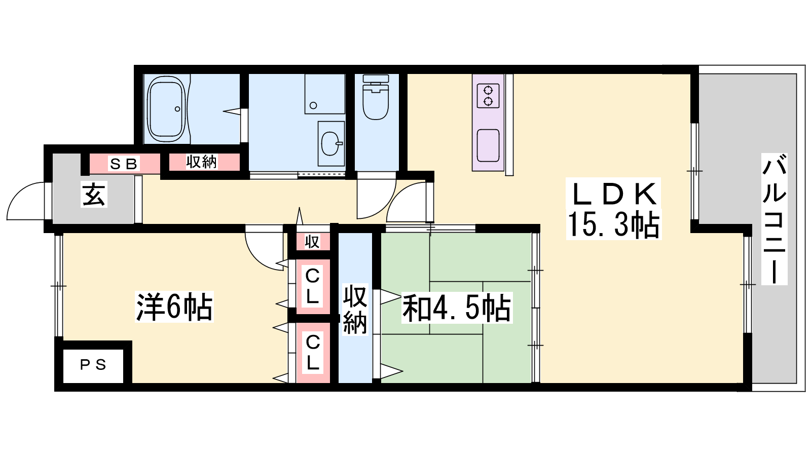 - LDK15.3帖、洋室6帖、和室4.5帖
