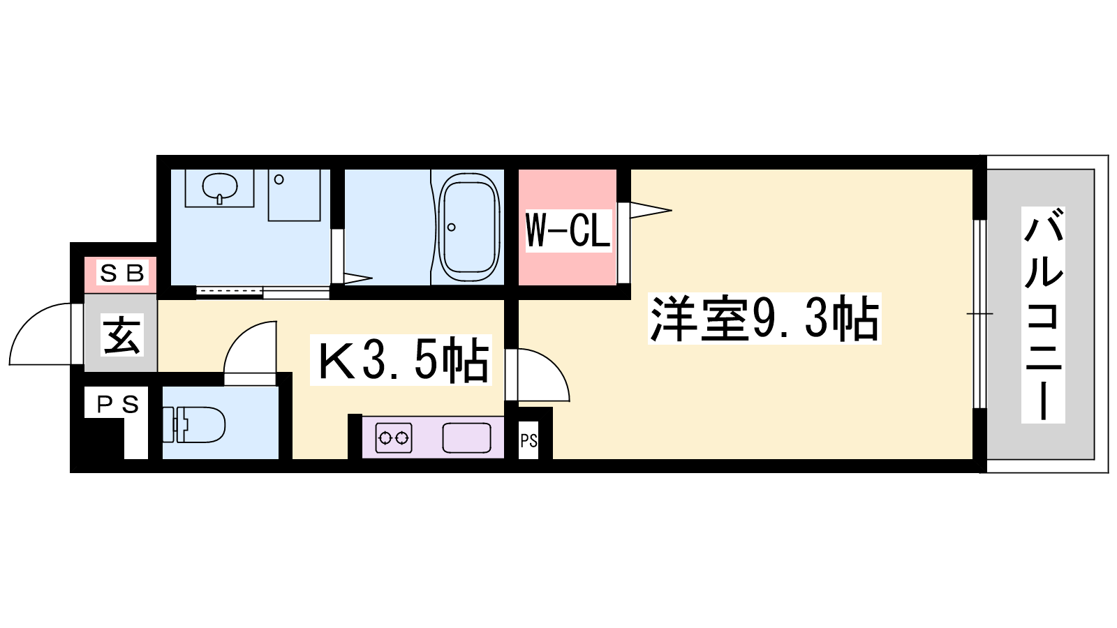 - K3.5帖、洋室9.3帖