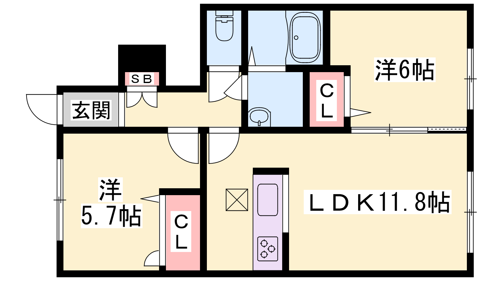 - LDK11.8帖、洋室6帖、洋室5.7帖