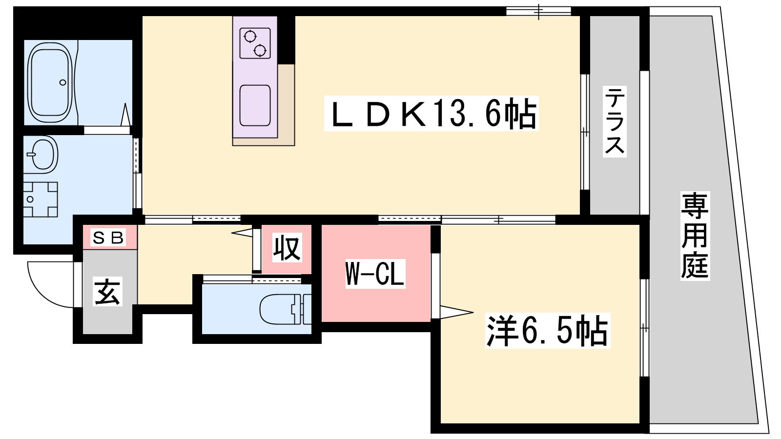 - LDK13.6帖、洋室6.5帖