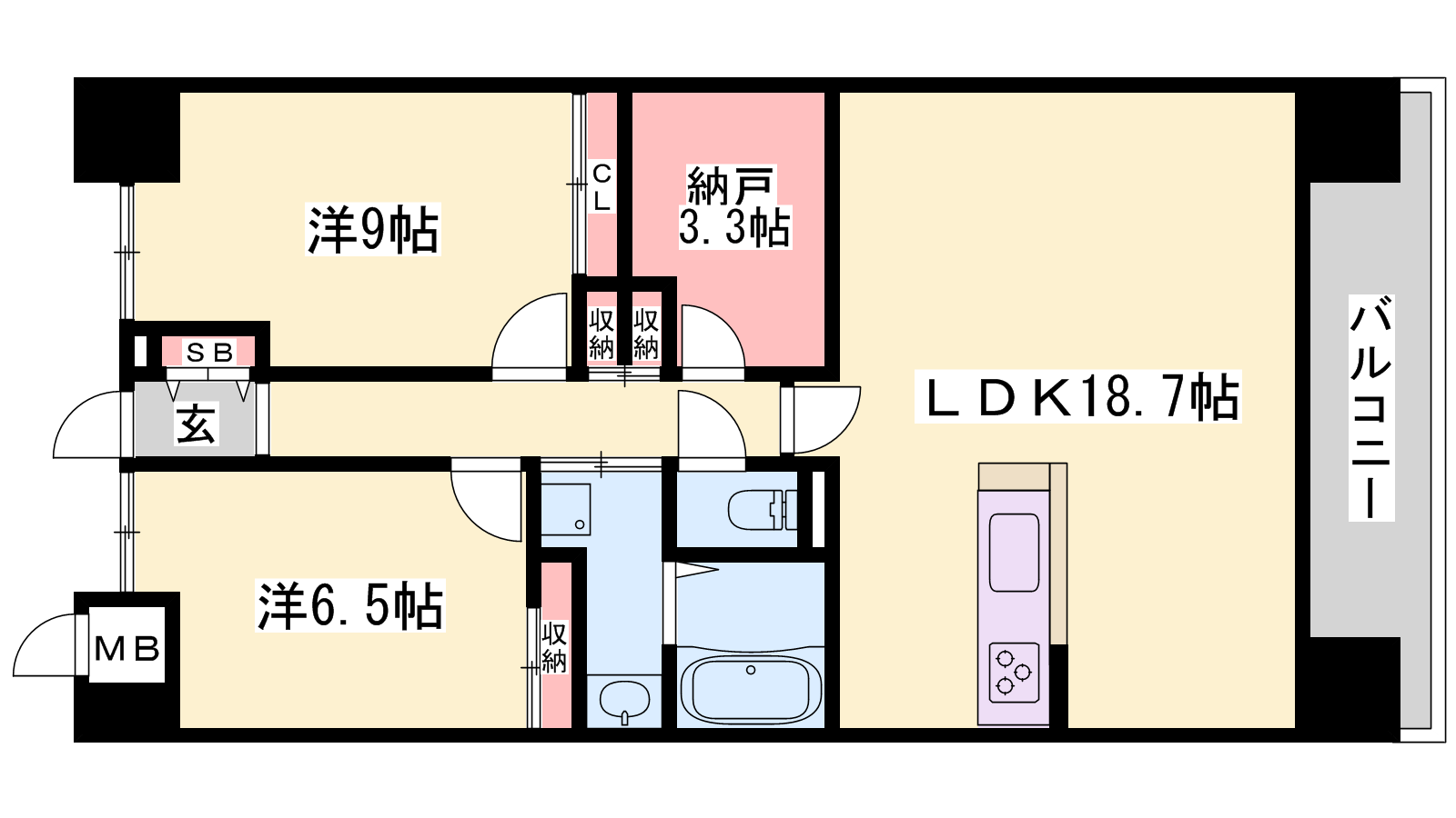 - LDK18.7帖、洋室9帖、洋室6.5帖、S3.3帖