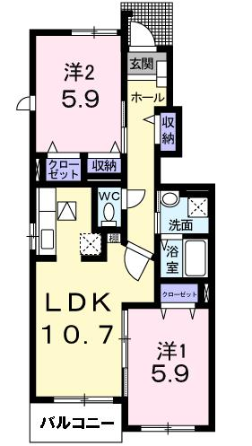 - LDK10.7帖、洋室5.9帖、洋室5.9帖
