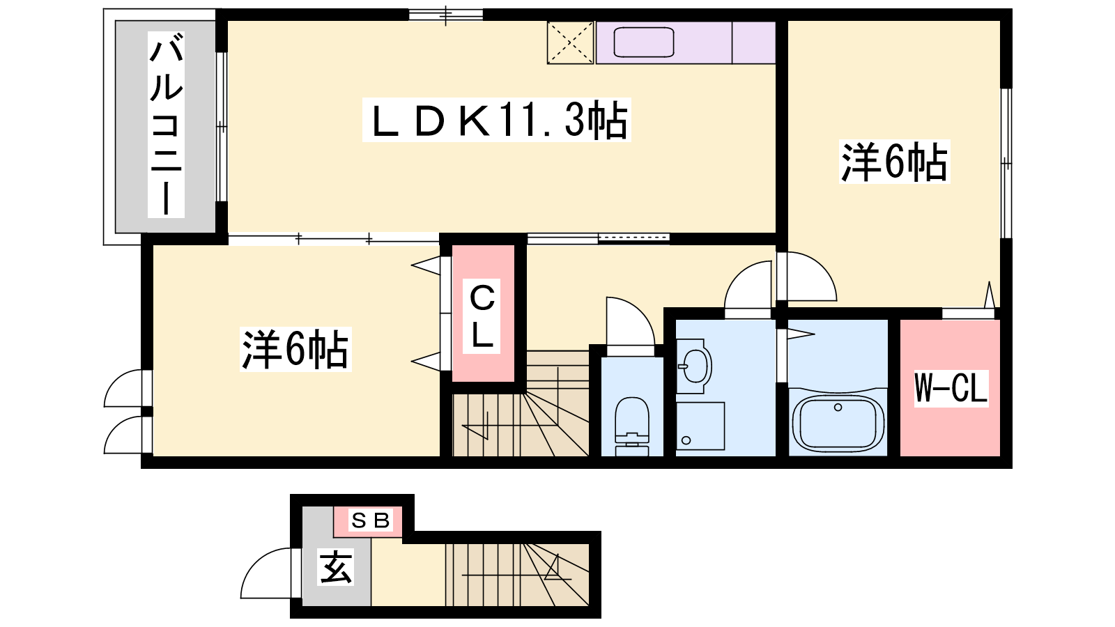 - LDK11.3帖、洋室6帖、洋室6帖