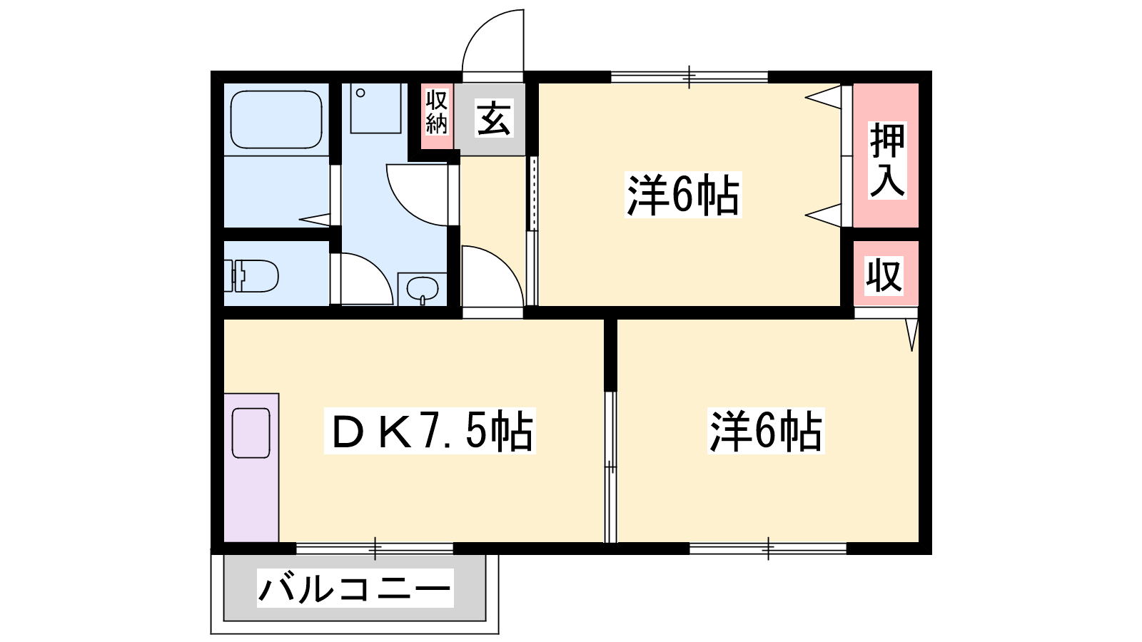 - DK7.5帖、洋室6帖、洋室6帖