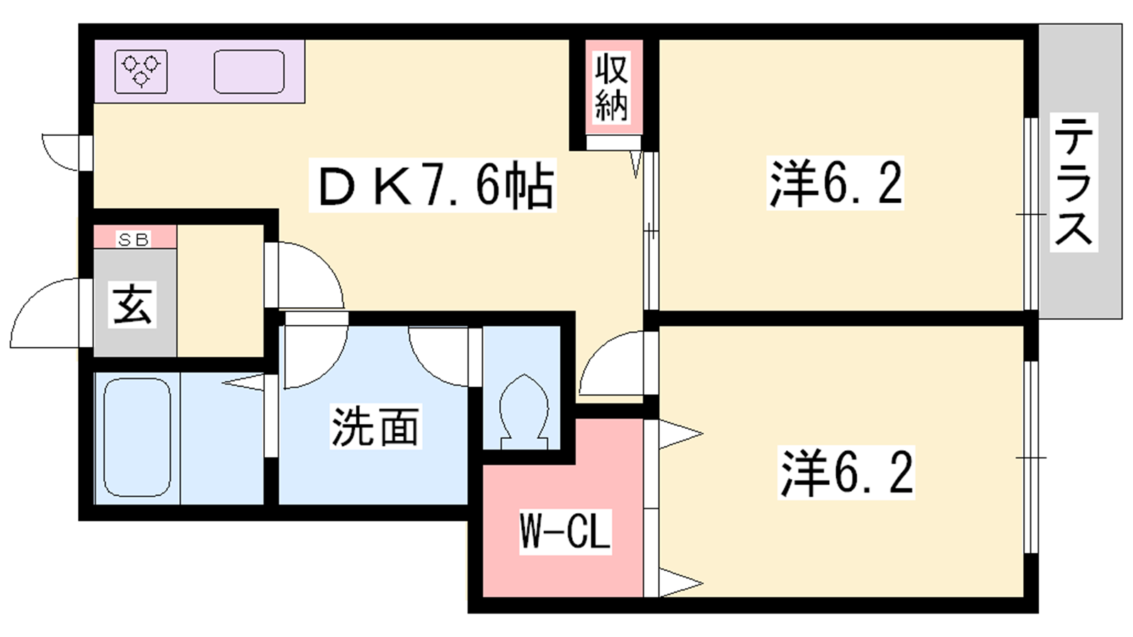 - DK7.6帖、洋室6.2帖、洋室6.2帖