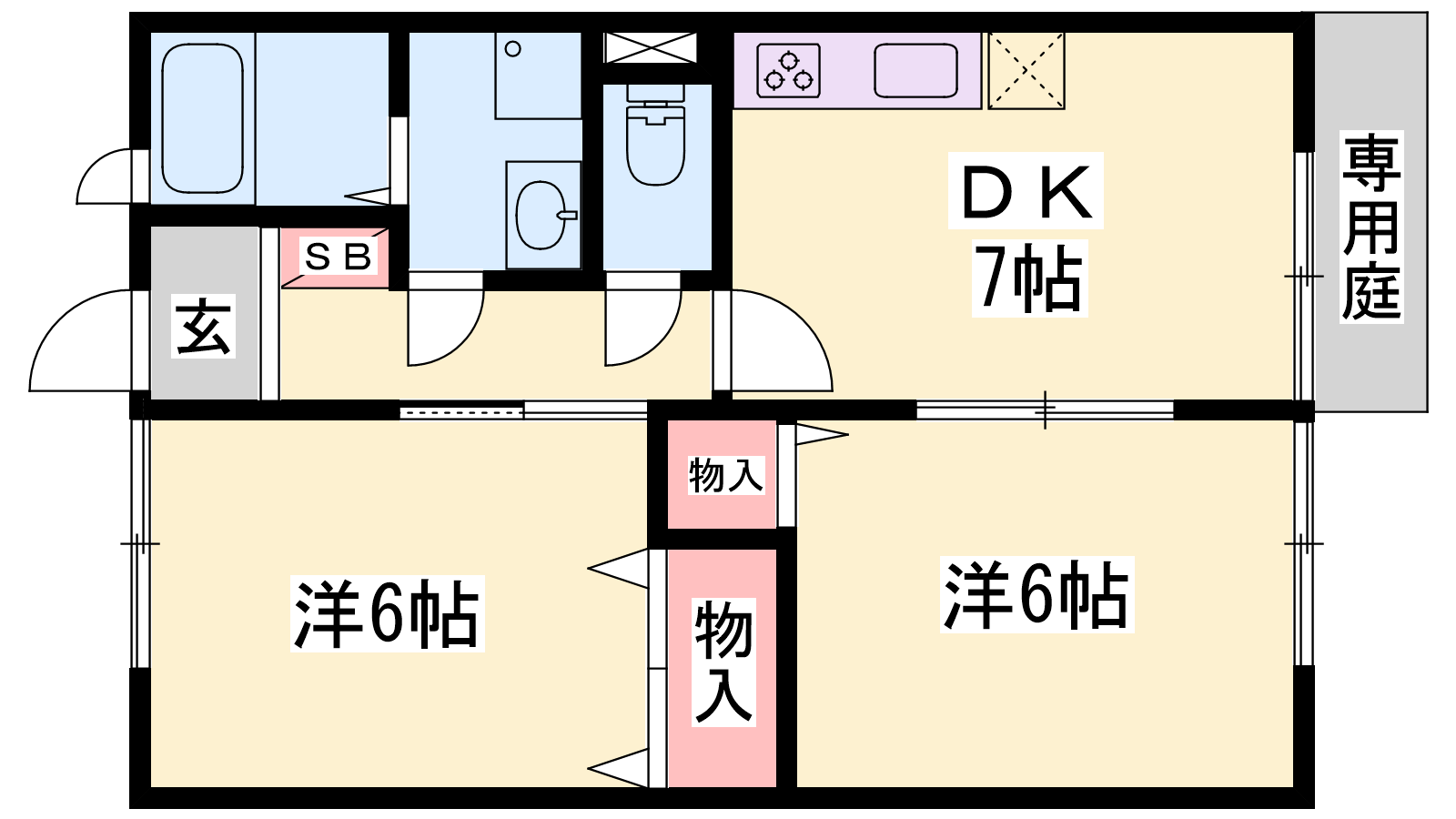 - DK7帖、洋室6帖、洋室6帖