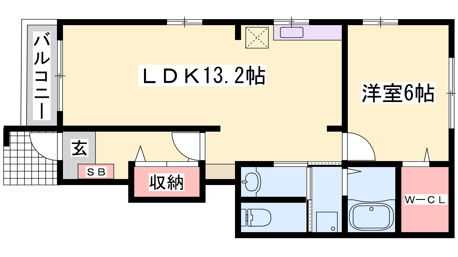 - LDK13.2帖、洋室6帖