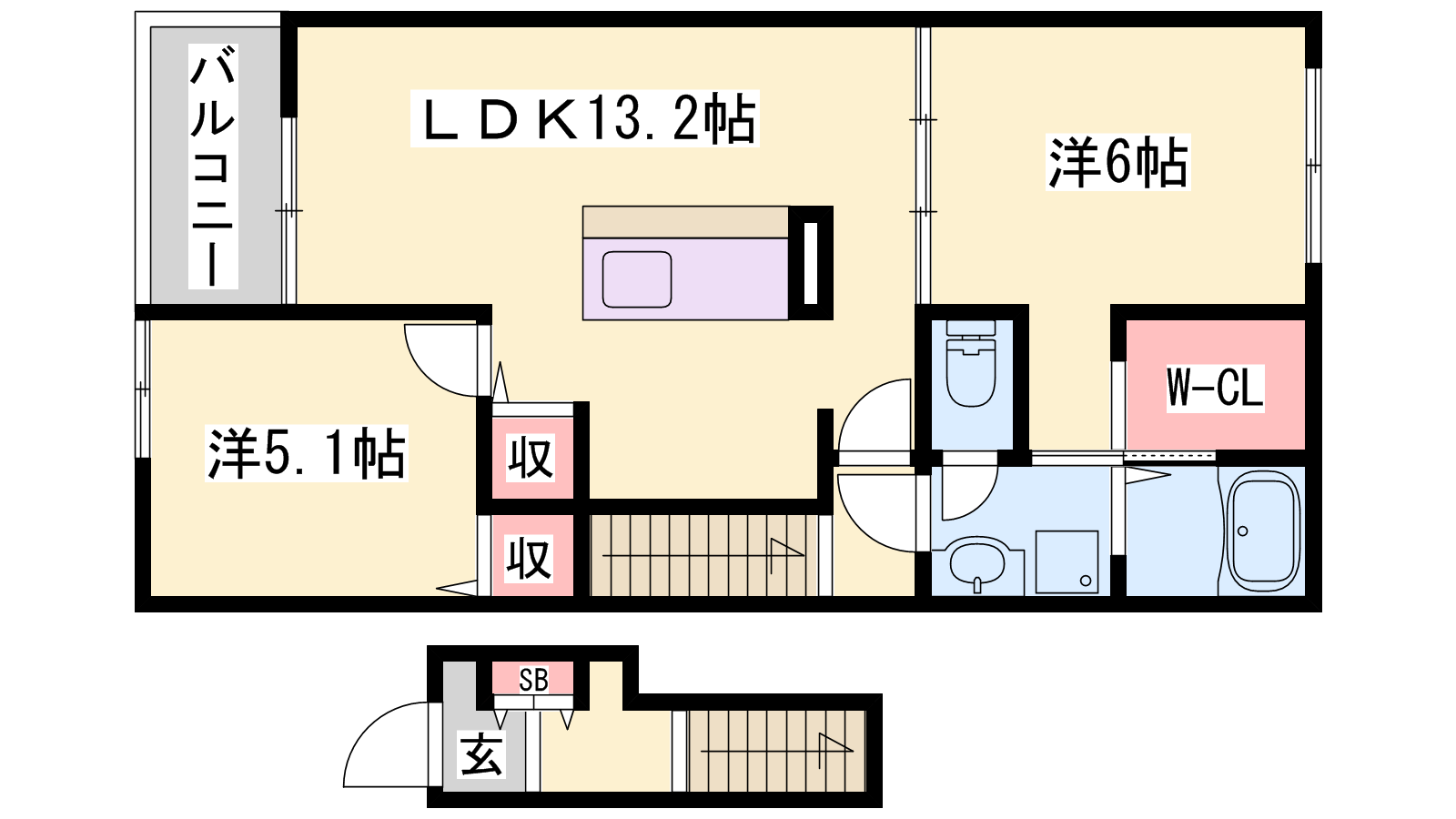 - LDK13.2帖、洋室6帖、洋室5.1帖