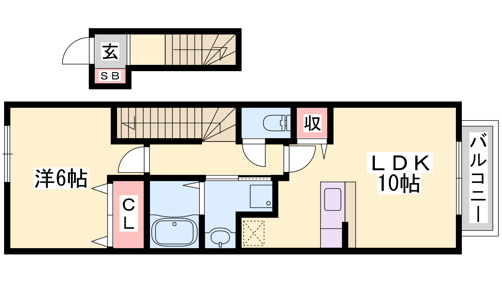 - LDK10帖、洋室6帖