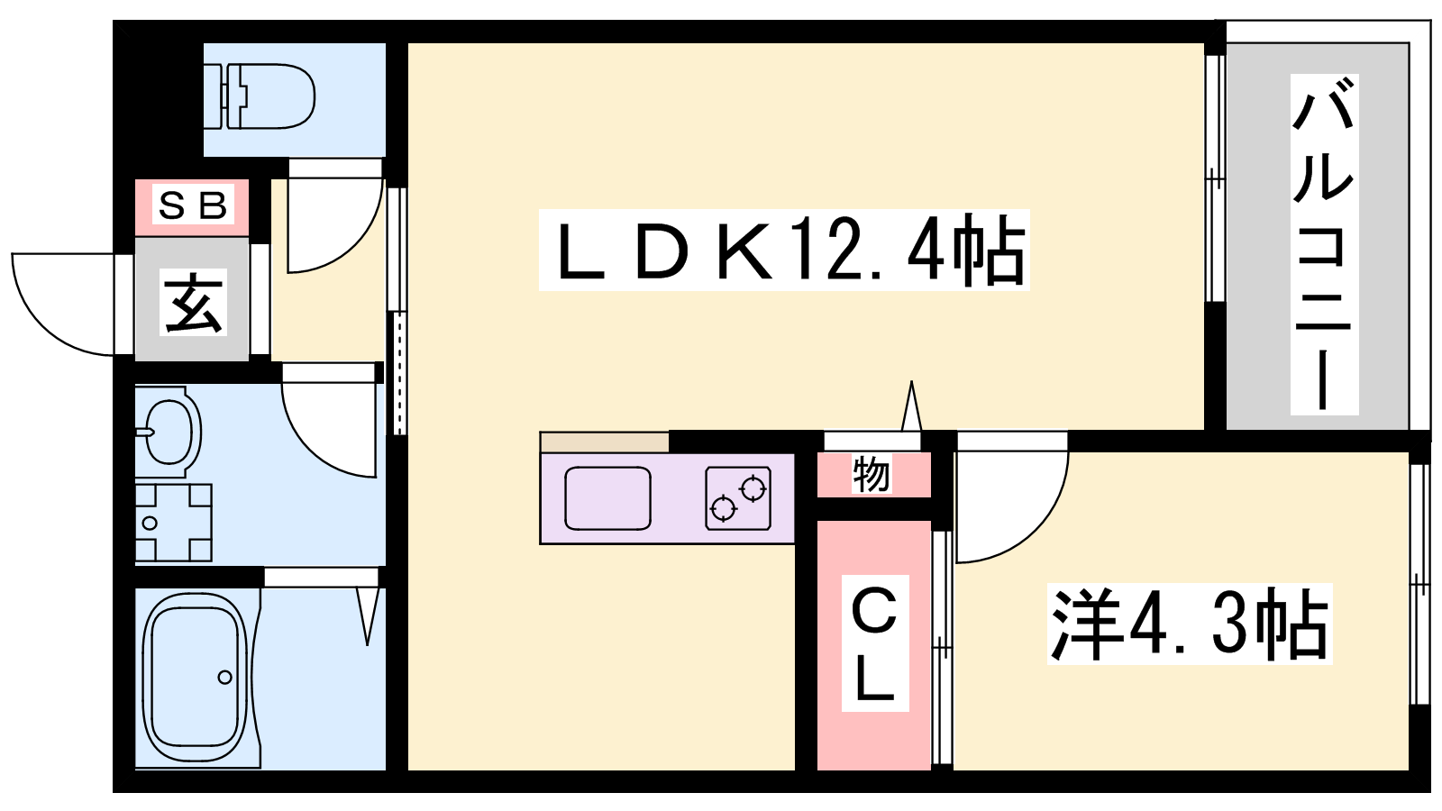 - LDK12.7帖、洋室4.3帖