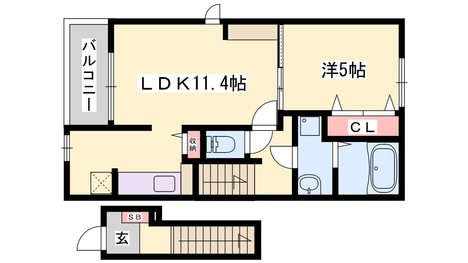 - LDK11.4帖、洋室5帖