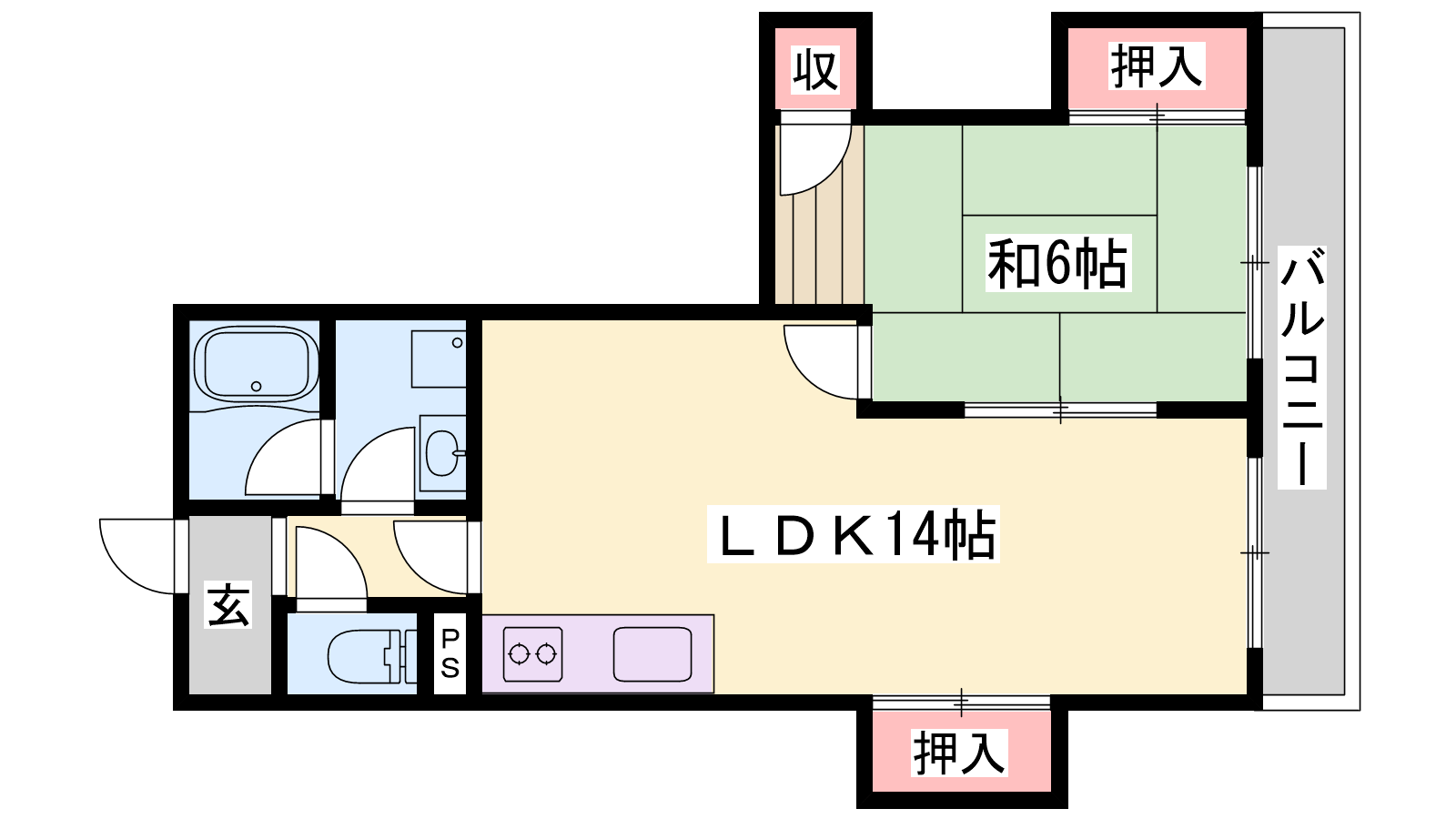 - LDK14帖、和室6帖