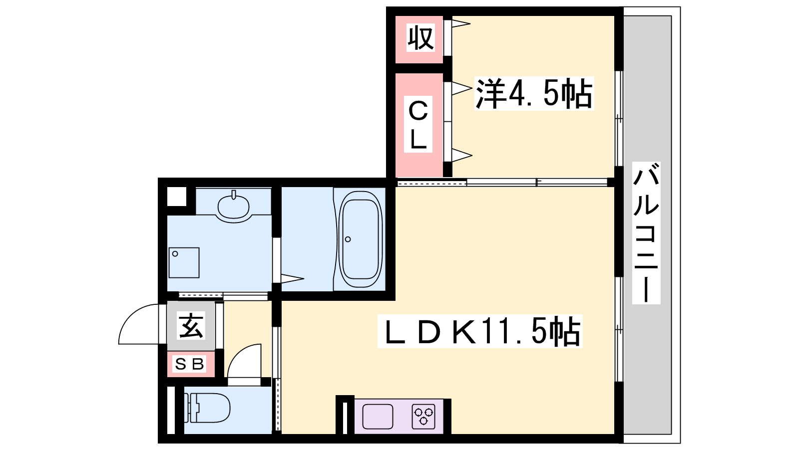 - LDK11.5帖、洋室4.5帖
