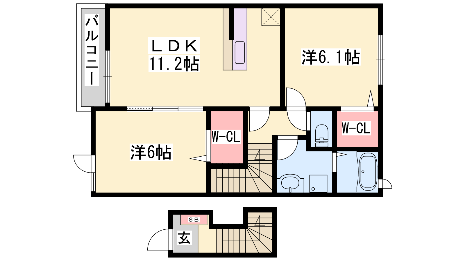 - LDK11.2帖、洋室6.1帖、洋室6帖