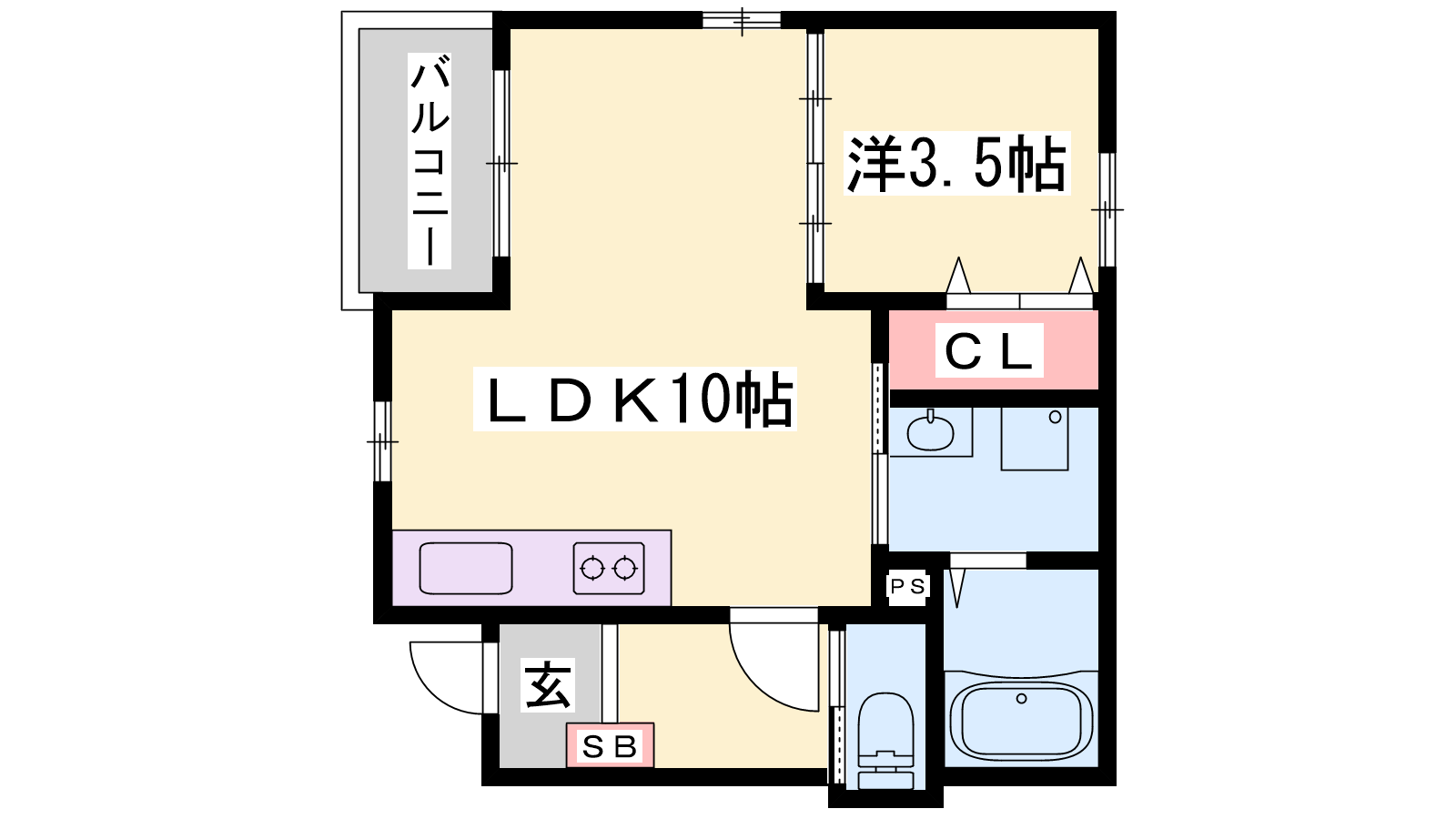 - LDK10帖、洋室3.5帖