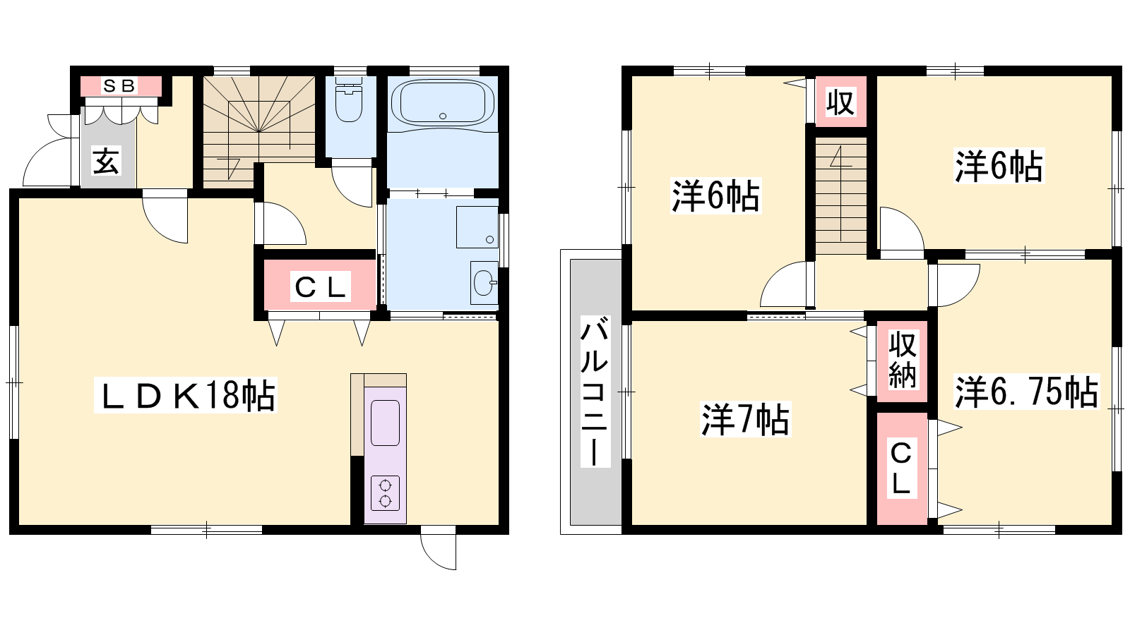 - LDK18帖、洋室7帖、洋室6.75帖、洋室6帖、洋室6帖
