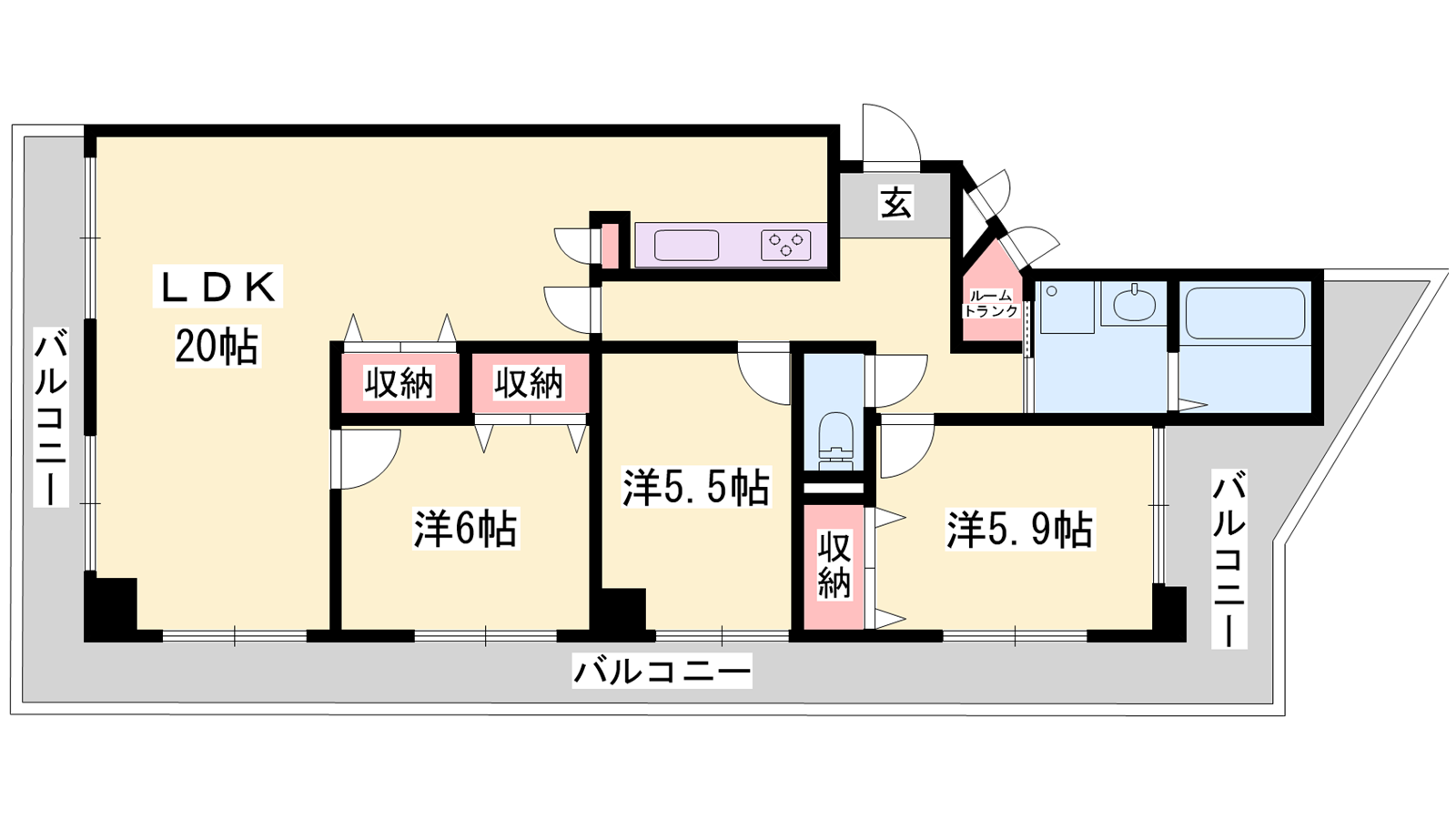 - LDK20帖、洋室6帖、洋室5.5帖、洋室5.9帖