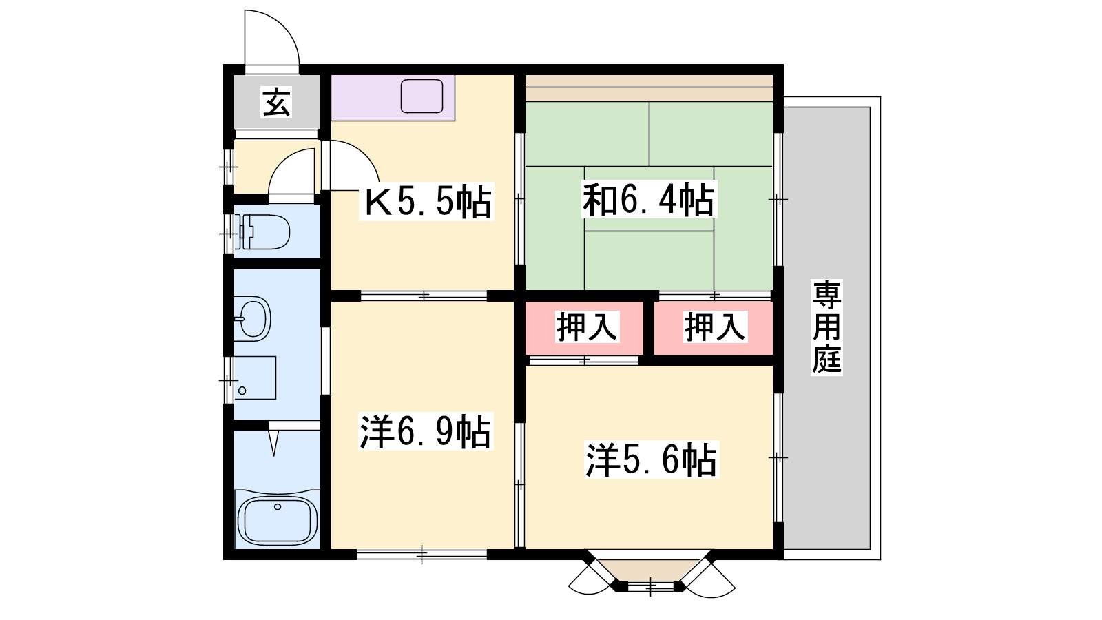 - K5.5帖、和室6.4帖、洋室6.9帖、洋室5.6帖