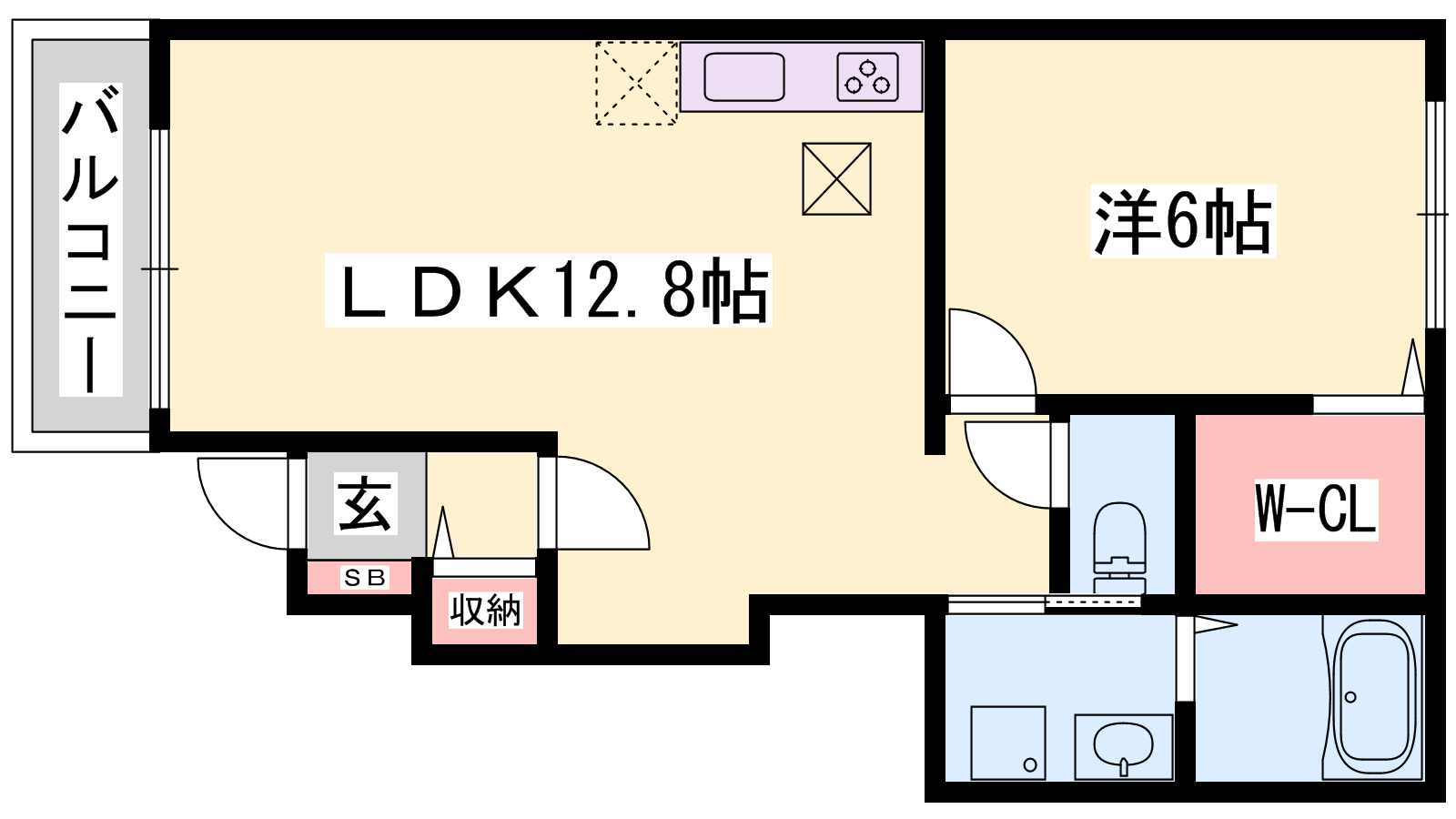 - LDK12.8帖、洋室6帖
