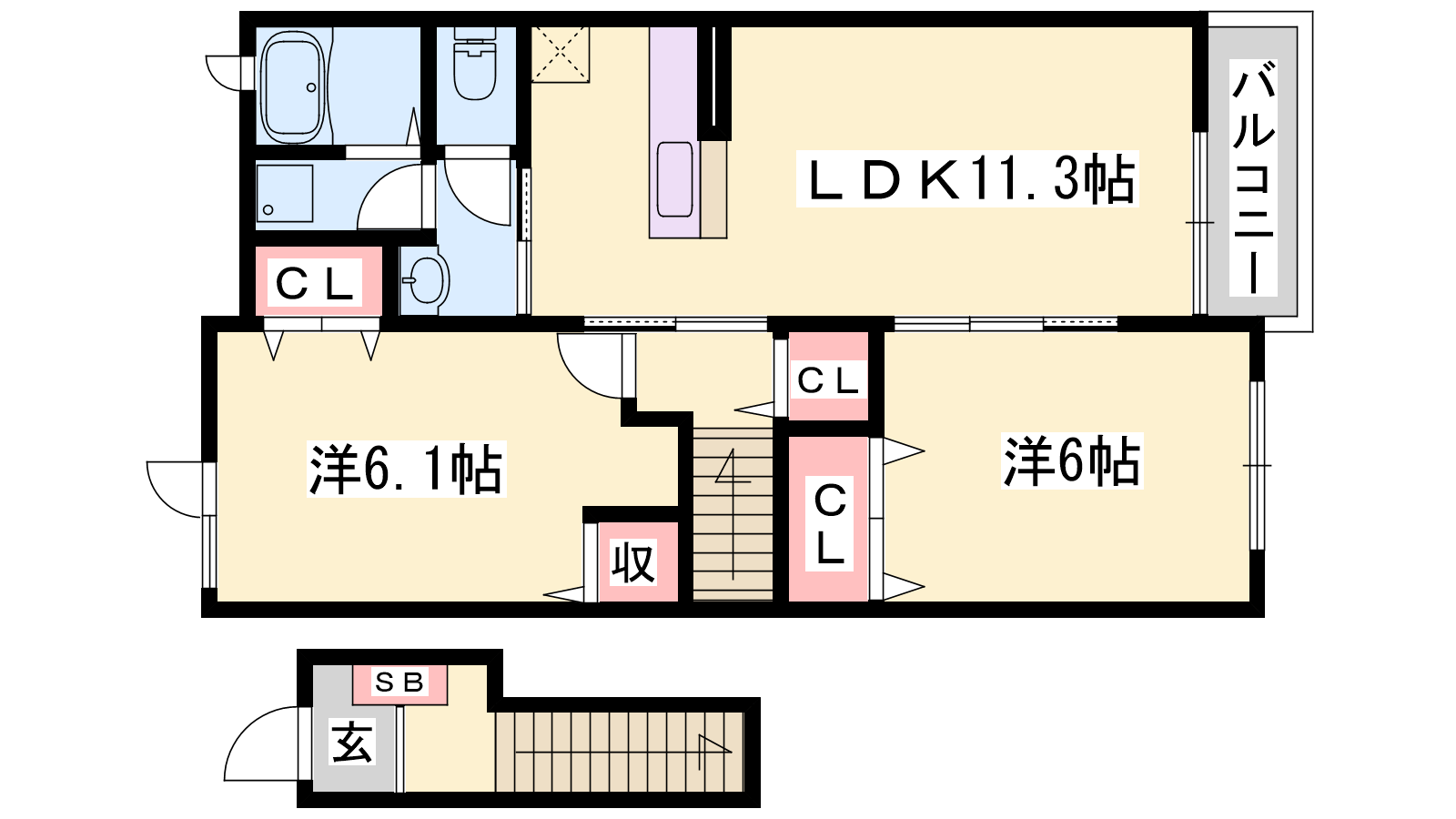 - LDK11.3帖、洋室6帖、洋室6.1帖