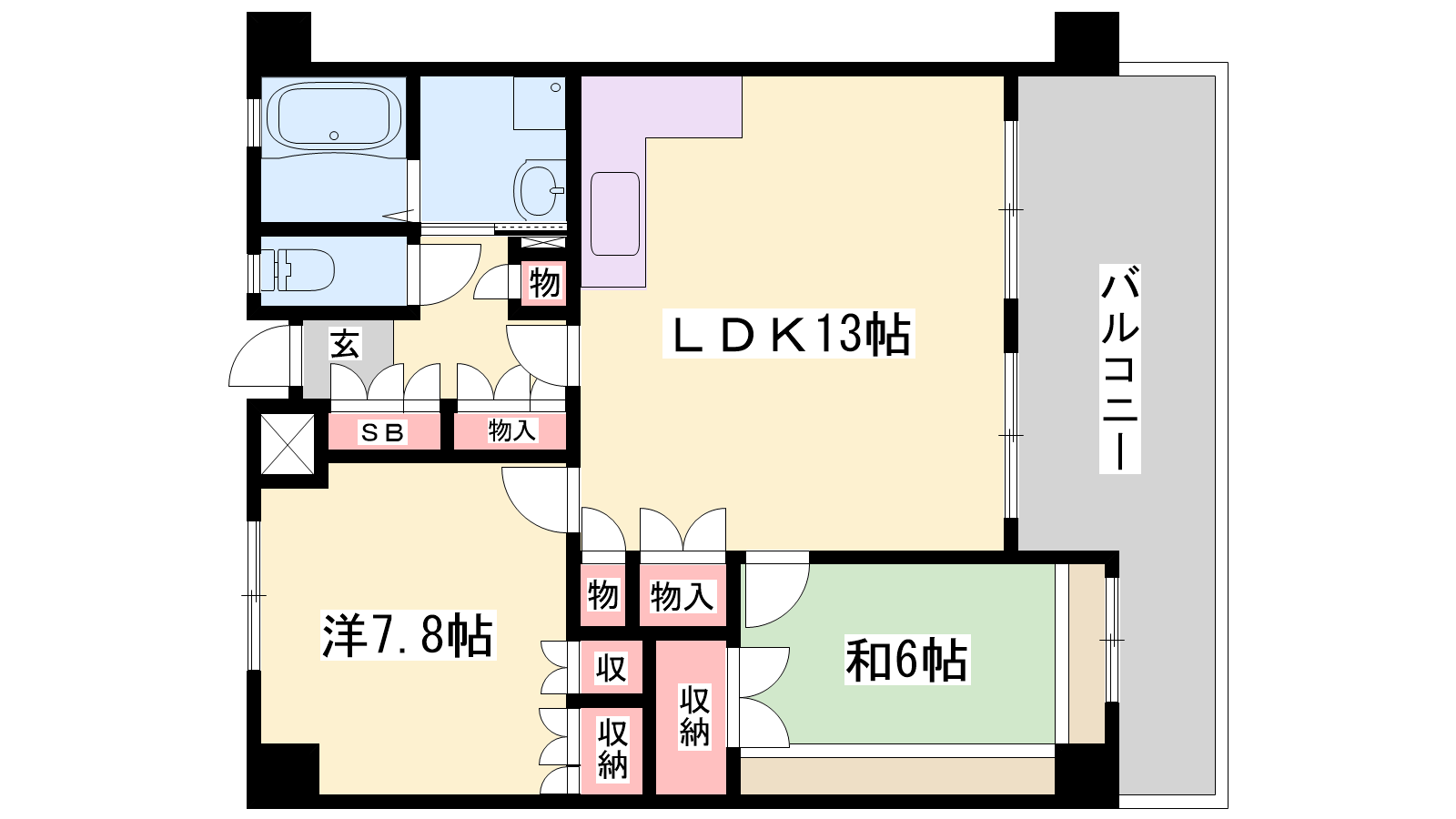 - LDK13帖、洋室7.8帖、和室6帖