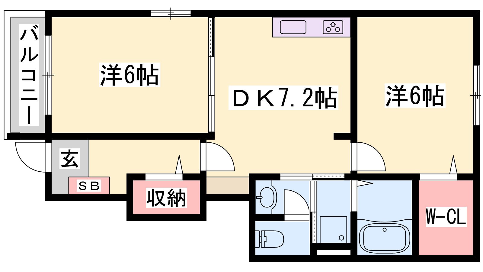 - DK7.2帖、洋室6帖、洋室6帖