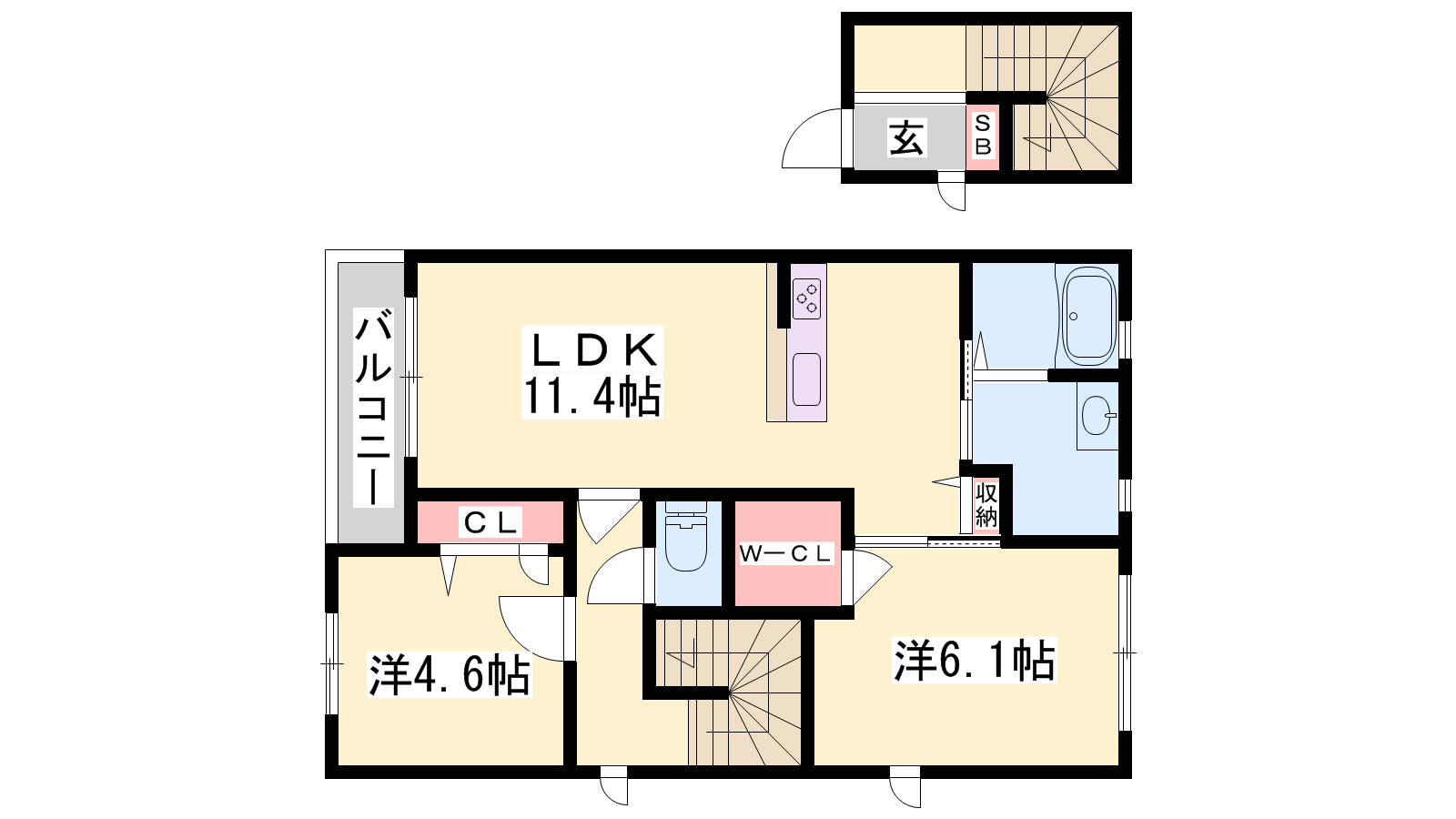 - LDK11.4帖、洋室6.1帖、洋室4.6帖