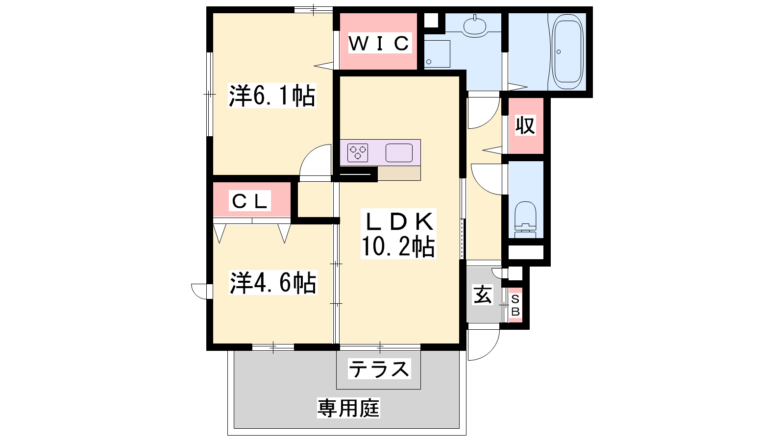 - LDK10.2帖、洋室6.1帖、洋室4.6帖