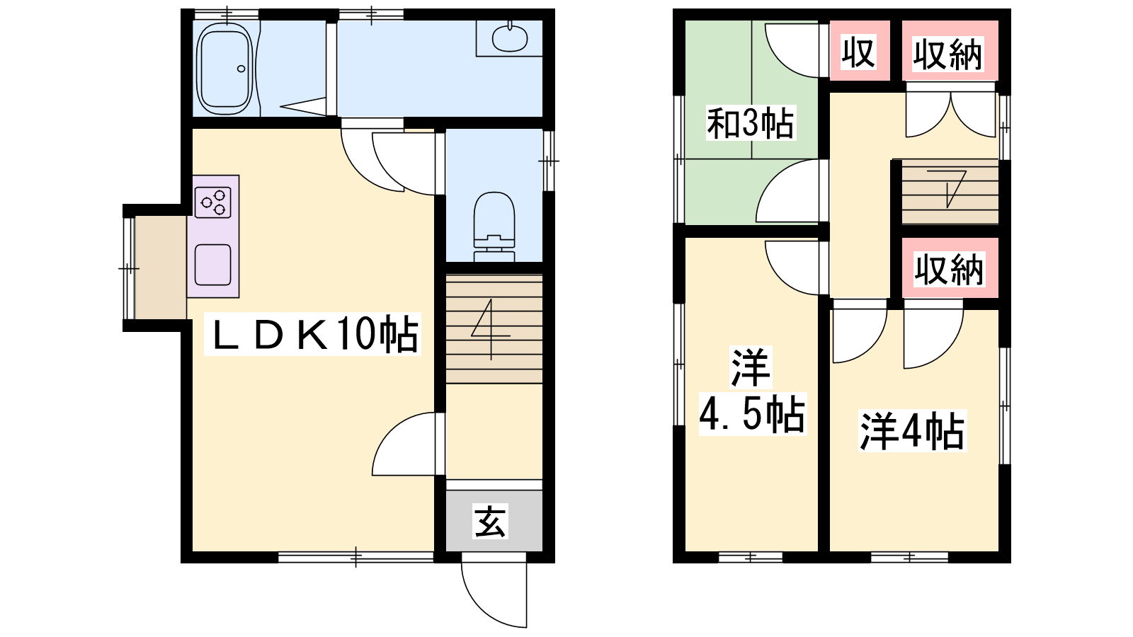 - LDK10帖、洋室4.5帖、洋室4帖、和室3帖