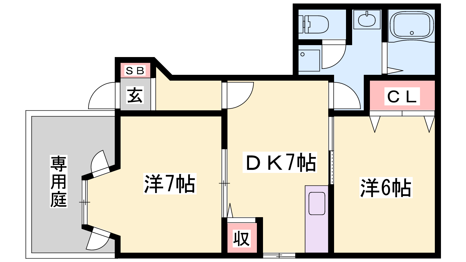 - DK7帖、洋室7帖、洋室6帖